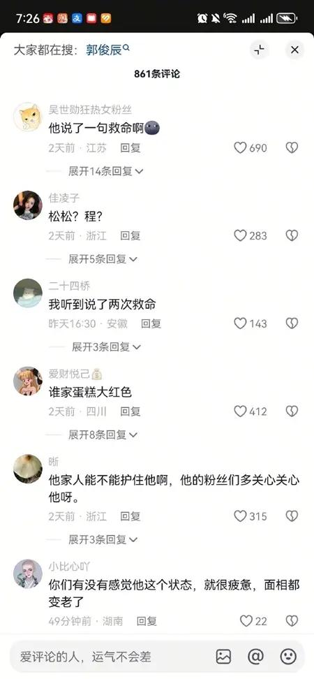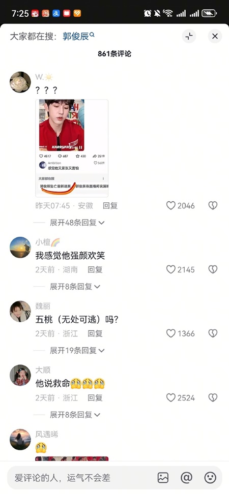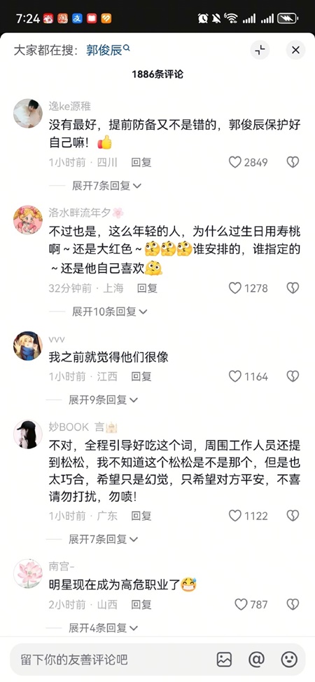 “他的经纪人好像是杜强(于朦胧经纪人)的老朋友,周围应该都不是啥好人。”“他生日的好像被控制了。”“真可怕。”“小心安全,提高警惕。”