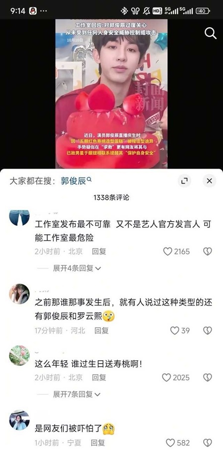 在舆论发酵之际,10月10日,郭俊辰工作室发声明辟谣,声称郭俊辰未受到任何人威胁、控制或攻击等。不过此声明,也没有打消网友的担心和疑虑。