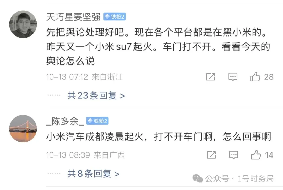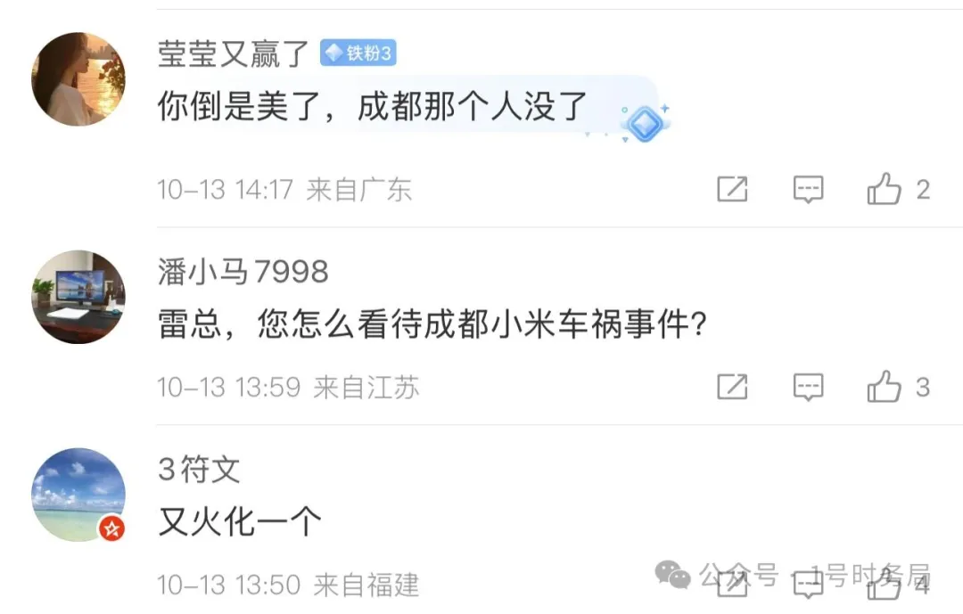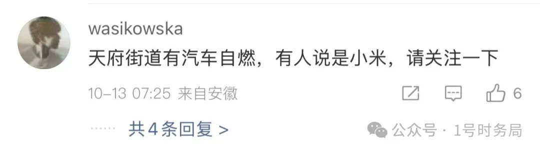 在评论区,不少有网友咨询成都天府大道疑似小米汽车起火事件,截止发稿暂未获回应。