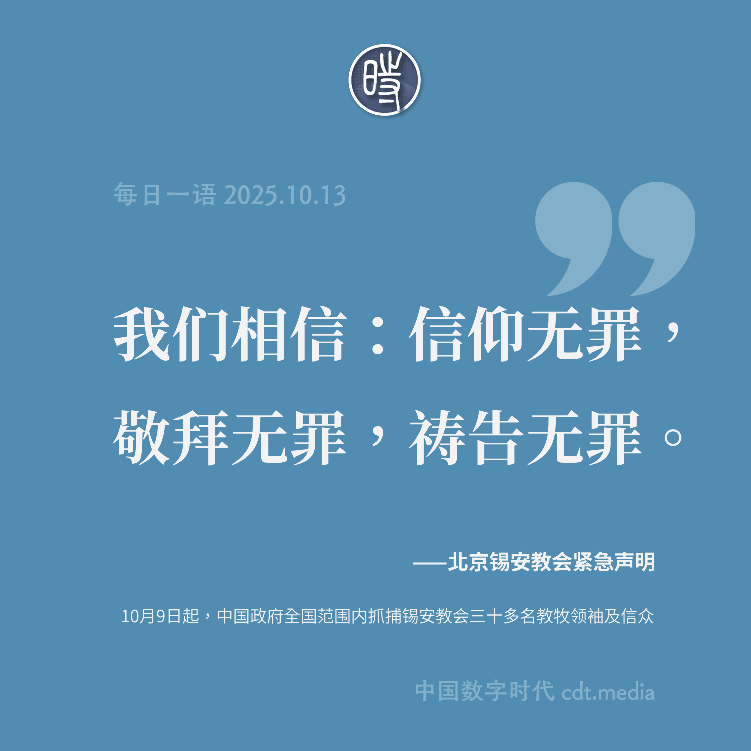 相关阅读:【CDT关注】维权网|近日锡安教会在全国各地的近30名牧者同工相继被拘留或失联
