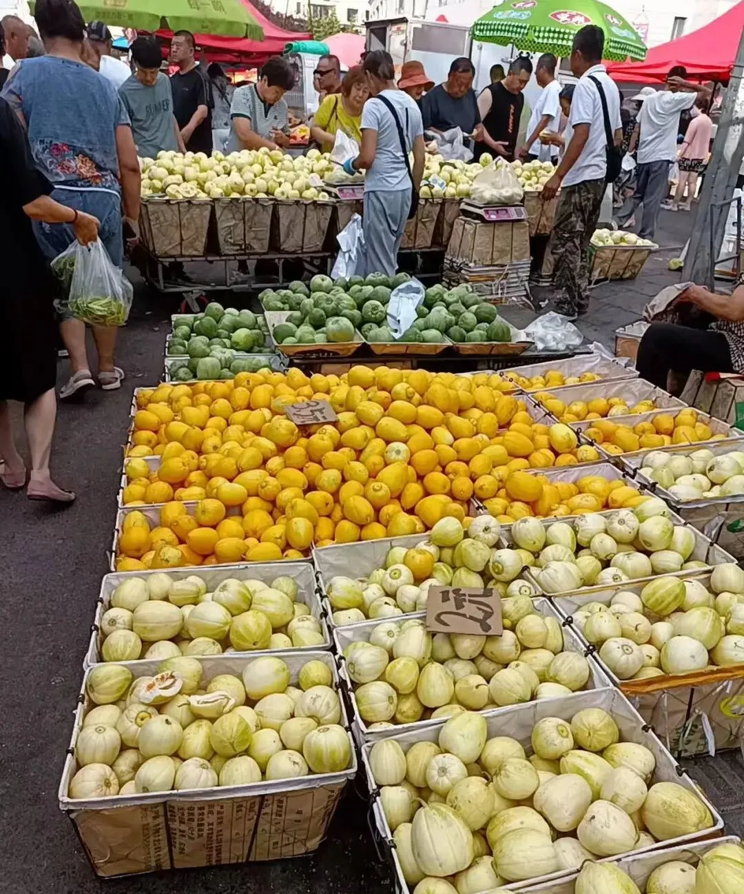 这里的蔬菜水果,从摆放风格开始就和超市里的精品包装截然不同——它们按“箱”卖、论“堆”称,带着刚从土地里收获的淳朴气息,没有任何多余的修饰。