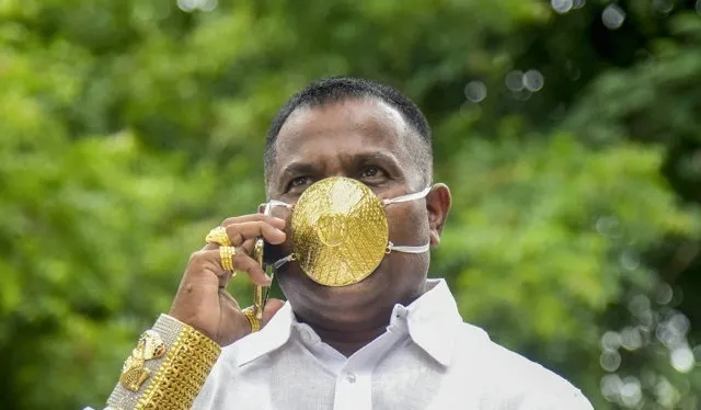 常规的首饰,并不能完全满足印度土豪们的需求,他们也会自行发挥创意,定制各种黄金制品。2020年,有个印度商人就订制了55克重的黄金口罩,过滤效果基本没有,纯图一乐。