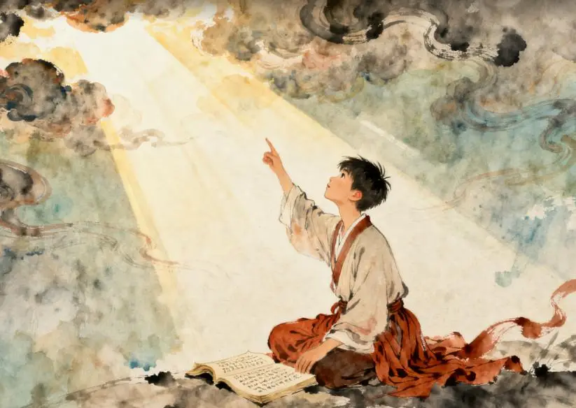 阿明自幼聪慧,读过《论语》《孟子》,也听过道观里的讲经。他知道“天道酬勤”,知道“地道柔顺”,知道“人道仁义”,可这些词像天上的云,看得见,摸不着。他站起身,拍了拍裤脚的泥土,忽然听见远处传来清越的铃声。叮——叮——叮——