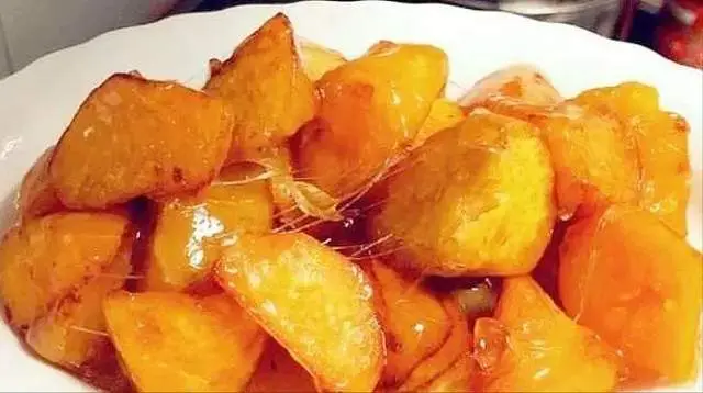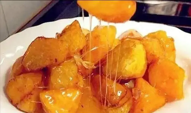 温馨小提示:炒糖色时一定要用小火,要有耐心,千万别着急。第一次做如果失败了也不要灰心,多试几次,一定会做出能拉出长长丝线的拔丝地瓜。