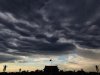 2025年9月30日,北京天安门广场靠近人民大会堂一侧密集停放的车辆。中共高官在乌云笼罩下参加向纪念碑献花圈活动。