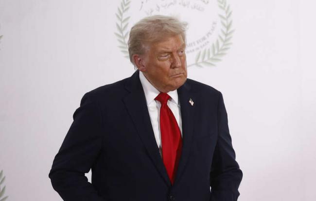 美国总统川普13日在埃及出席加萨国际和平峰会。(美联社