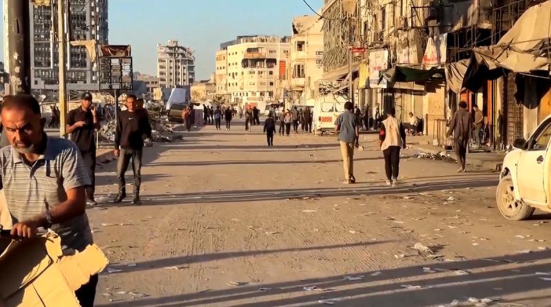 停火后,巴勒斯坦人穿越满目疮痍的街道。图:翻摄自 X《Reuters》