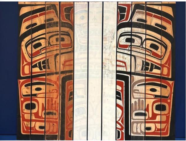 帕内尔的雕塑由11块木质面板组成,图案灵感来自他父母的文化背景——不列颠哥伦比亚省的尼斯加族(Nisga’a)与海达人(Haida)原住民。