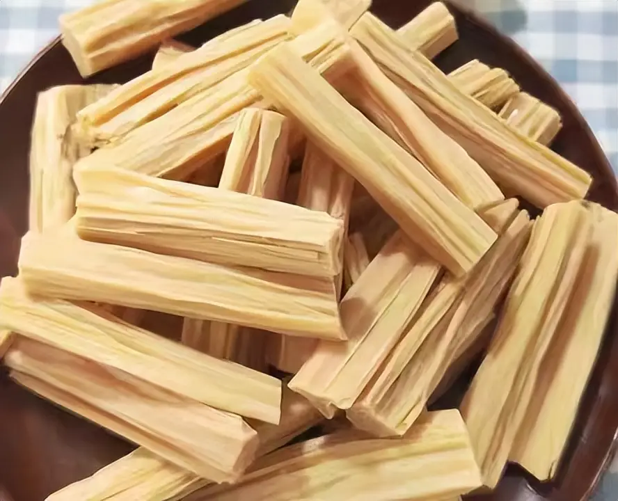 众所周知,制作腐竹的原材料是大豆,大豆的颜色就是淡黄色,所以优质的腐竹必定是淡黄色,而且鲜亮有光泽,就好像上了一层油。然而,一些不法商家为了让腐竹的卖相更好,增加其韧性和保存期限,会在制作过程中违规添加硼砂。添加了硼砂的腐竹,外观上可能会显得格外金黄、有光泽,质地也会比正常腐竹更硬、更有嚼劲。当我们购买腐竹时,若发现其颜色过于鲜艳、质地异常坚韧,就需要谨慎购买。尽量选择有正规包装、标明生产厂家和质量认证的腐竹产品。