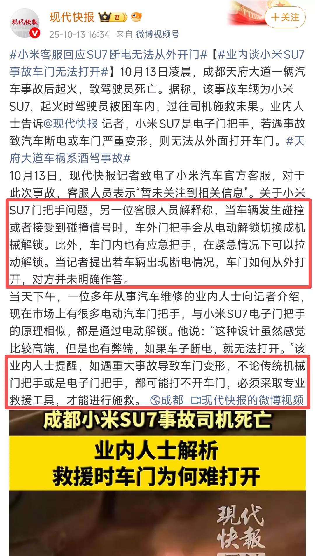 所以,既然已经涉及到小米了,而且很多网友都已经对车门为何打不开存在争议(不管这种争议是不是有着坚实的道理和依据,这种争议的存在本身都是不容否认的事实),那做报道时,就该让小米站出来为自己辩解。