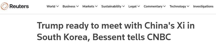 英国路透社报道称,美国财政部长贝森特(Scott Bessent)当地时间周三(10月15日)坚称,华盛顿不希望升级与中国的贸易冲突,并强调美国总统川普(Donald Trump)准备本月晚些时候在韩国会见习*近*平。