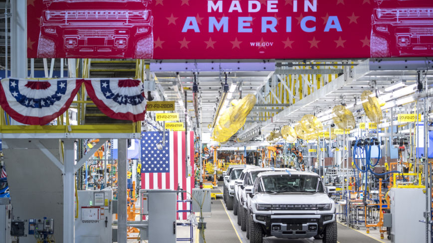 图为通用汽车公司位于密歇根州底特律的电动车组装厂。