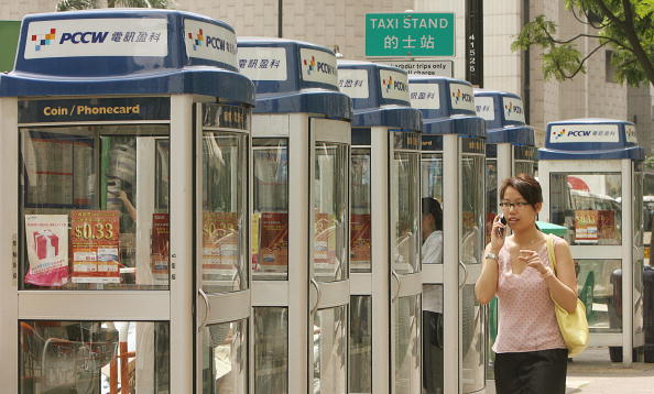 香港电讯盈科电话亭。(Mike Clarke/AFP/Getty Images2006-6-20)