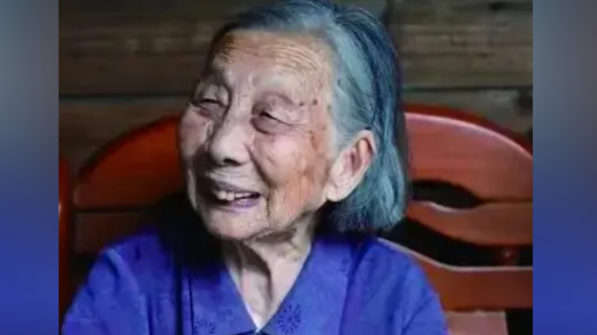 浙江温州永嘉黄田街道江边村老人陈阿菊,今年已101岁。(视频截图)