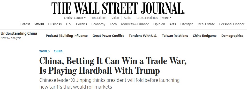 《华尔街日报》报道指出,在与华盛顿的贸易僵局中,北京方面认为找到了美国的致命弱点:川普总统对股市的执着。