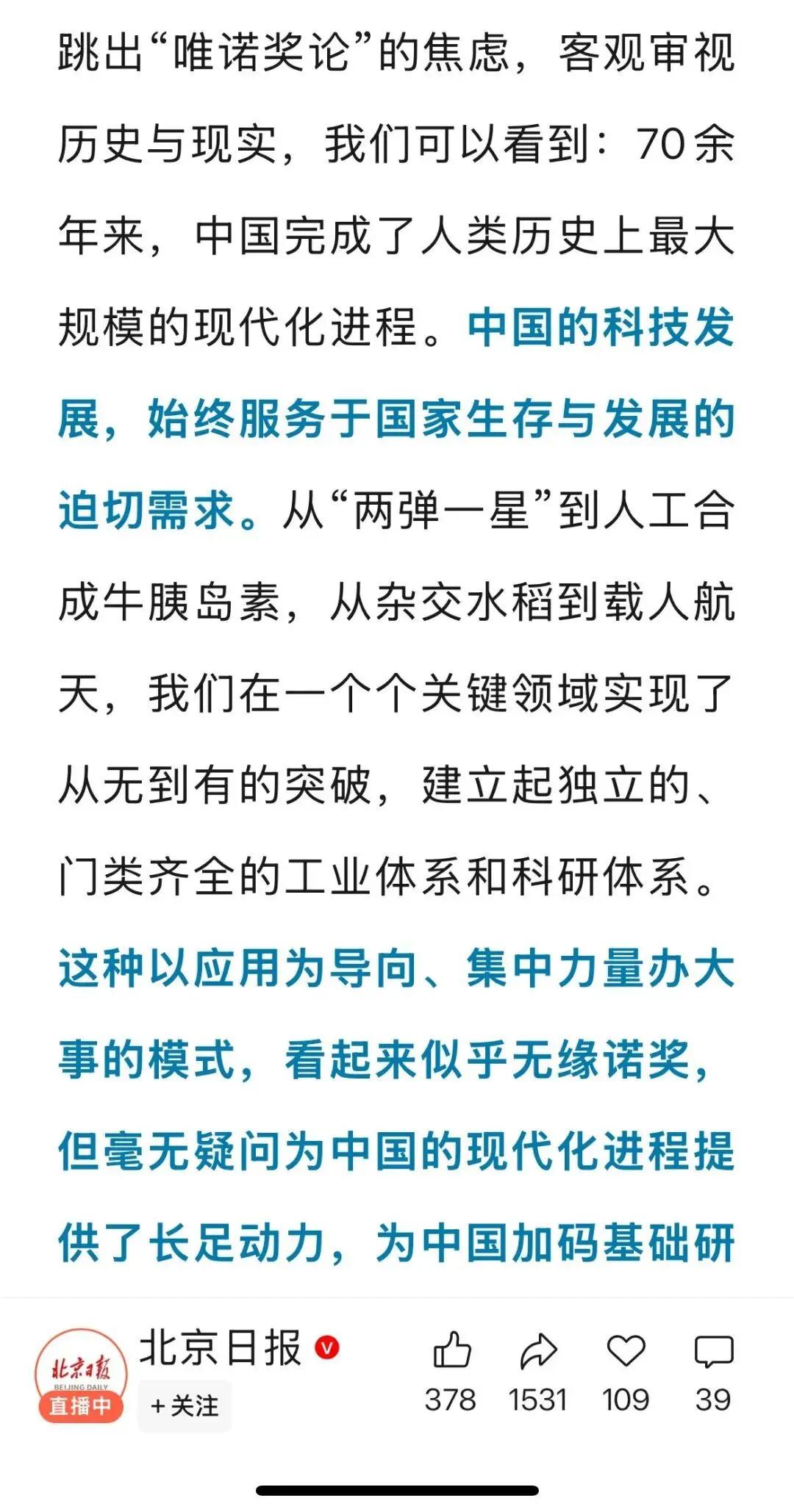 但是,现在的自然科学界,诺奖就是金标准,国内各大学招人才,别管有没有,一定要给一个政策,诺奖得主来了,我们给出什么条件,大专、职业学院都会写上这一条。