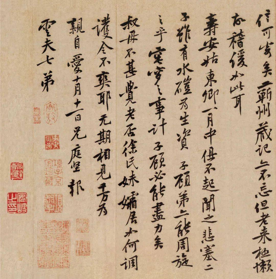 释文:天民、知命、大主簿:霜寒,想八嫂安裕、九你、四你、大新妇、普姐、师哥、四娘、五娘、六郎、四十、明儿、九娘、十娘、张九(咩儿)、韩十、小韩、曾儿、湖儿、井儿,各安乐。过江来,甚思汝等,寂寞且耐烦,不须忧路上,路上甚安稳。但所经州郡多故旧,须为酒食留连尔。家中上下,凡事切且和顺。三人轮管家事,勿废规矩。三学生不要令推病在家,依时节送饭及取归。书院常整龊、文字勿借出也。知命且掉下泼药草,读书看经,求清静之乐为上,大主簿读《汉书》必有功矣。十月十四日,立报。诸奶子以下,各小心照管孩儿们,莫作炒,切切。