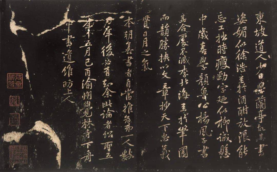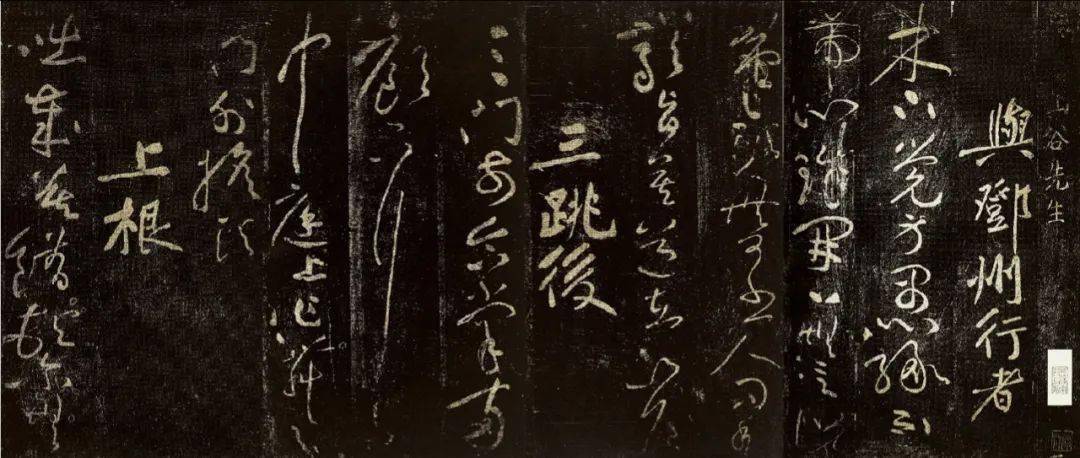 从客观上看,黄庭坚与苏东坡是中国书法史上早于清代八百年超越唐代书风的笼罩而远溯先唐碑版或者说进行碑帖结合的书家。对于苏轼书风形成的渊源,只要把其代表作《寒食诗帖》与洛阳《龙门二十品》做一比较,即可得出明确答案。黄庭坚是中国书法碑帖融合风范之萌芽。
