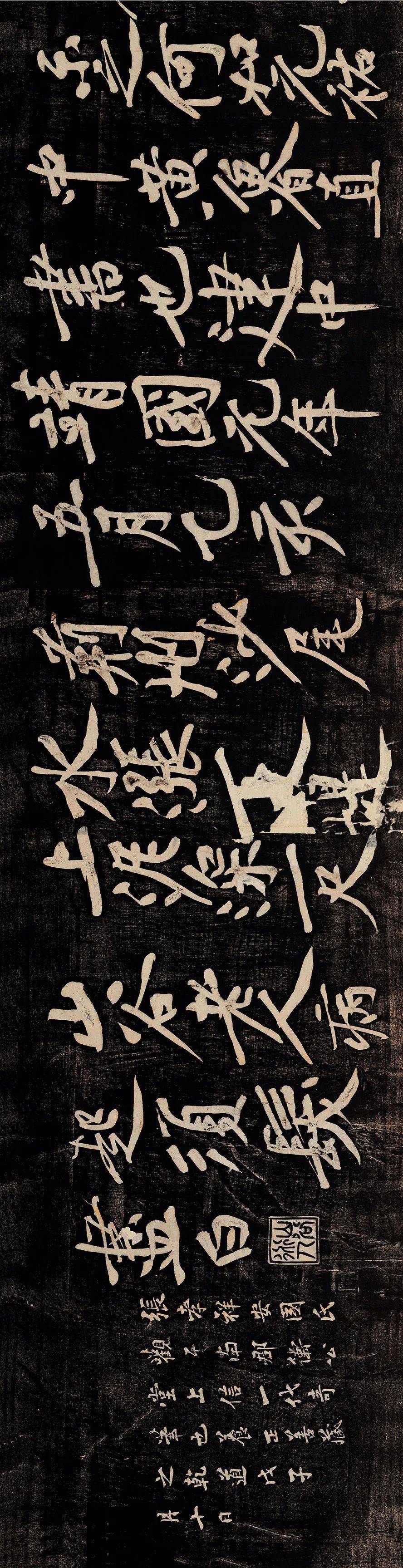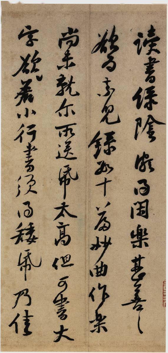 黄庭坚行楷大字书风的形成当为其于京口见断崖《瘗鹤铭》之后并不断师法孳乳而自成家法的。黄庭坚师《瘗鹤铭》有一个误会,即他把《瘗鹤铭》看做右军所书,且深信不疑,故而倾力揣摩师习。不过也算是歪打正着,这倒促进了黄庭坚长枪大戟、绵劲迟涩书风的形成。