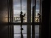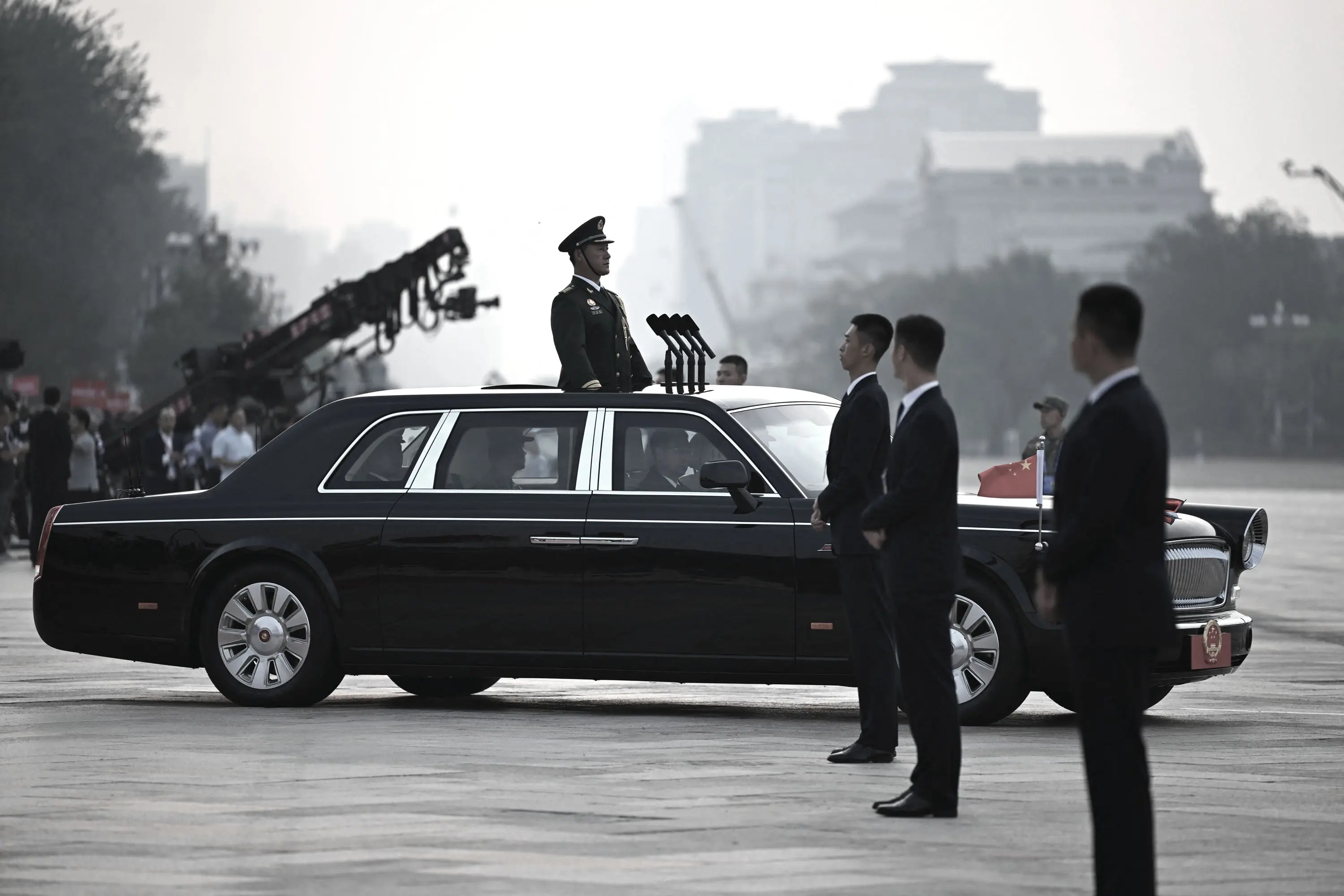 2025年9月3日,北京天安门阅兵前的最后彩排中,一名中共军官站在检阅车内。