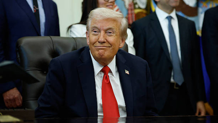 美国总统唐纳德·川普在2025年10月16日于华盛顿特区白宫椭圆形办公室举行的活动上聆听政府官员演讲。(Kevin Dietsch/Getty Images)