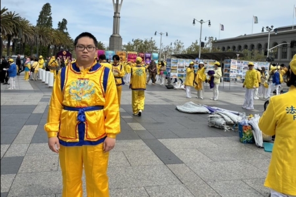 来自河北、现年24岁的学员 Bruce Wang,自幼成长于法轮功家庭,父母皆为修炼者,并曾因信仰遭中共迫害。虽然他了解父母的经历,却始终未真正投入修炼。2016年起,他在父母的带领下,每晚阅读一讲《转法轮》。2018年赴美留学后,生活渐渐忙碌,直到2024年4月,他参加了在 Millbrae的九天炼功班,学会了炼功动作。但真正走入法轮大法,则是在同年七月。