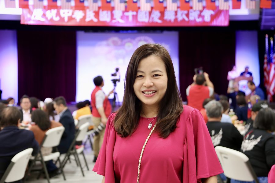 2025年10月5日,Sandy Wan出席于南湾侨教中心举行的中华民国国庆公宴。(薛明珠/大..;