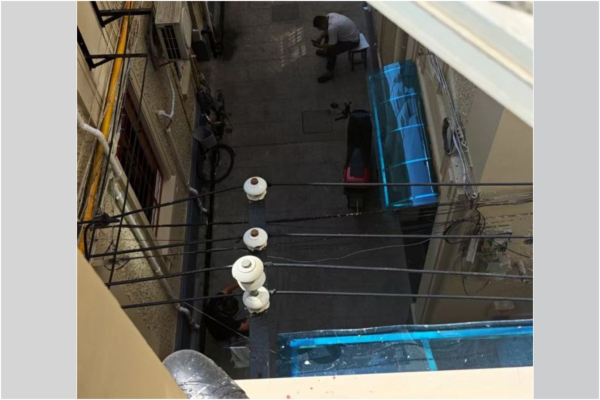中共四中全会即将于10月20日在北京召开。图为访民俞忠欢家后门两名黑保安看守着。(受访者提供)