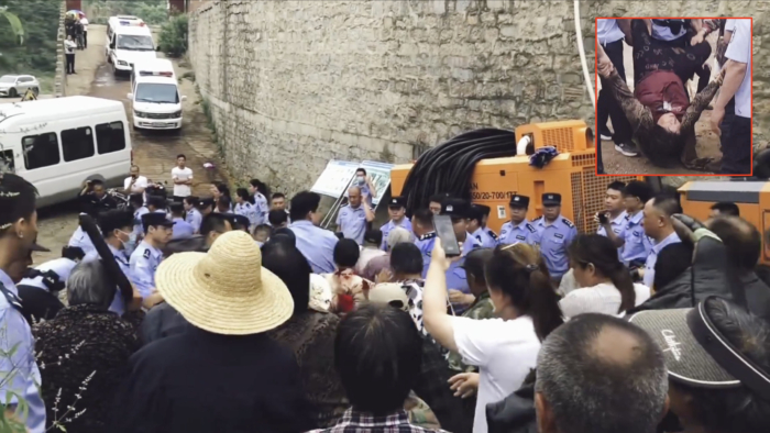 2024年6月,秦皇岛市青龙县韩杖子村村民因抗议村干部私自出售村地收入而遭当局镇压,7人被捕。(视频截图)