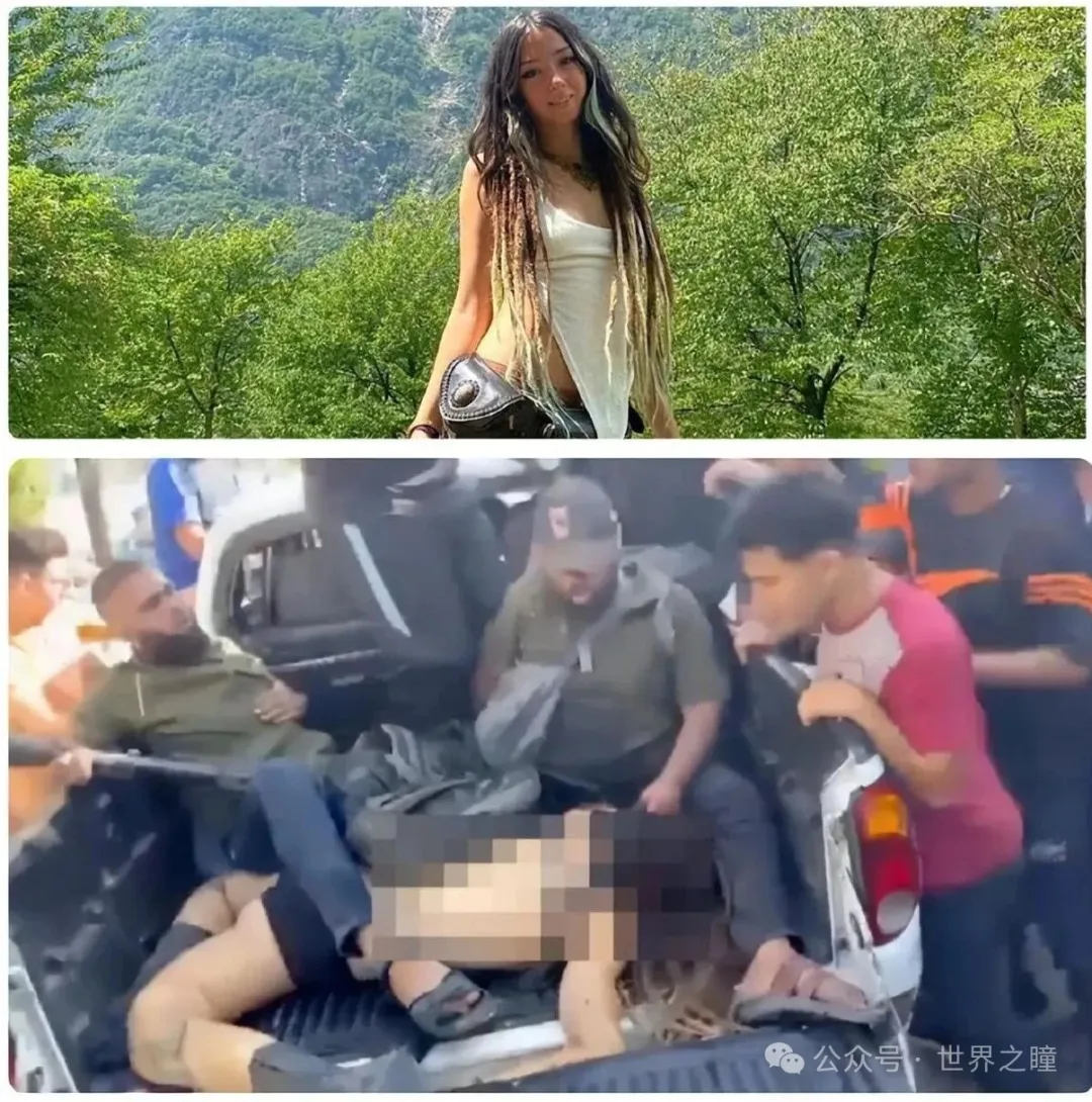 23岁的Shani Lauk,10月7日被皮卡带回加沙,她被剥掉衣服,一条脚以不自然角度弯曲,明显被打断。