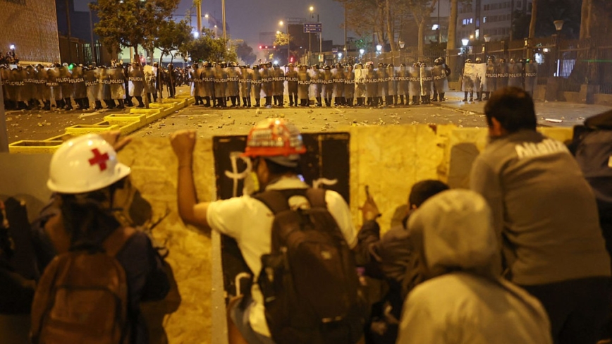 2025年10月15日,在利马举行的抗议活动中,示威者与防暴警察发生冲突。