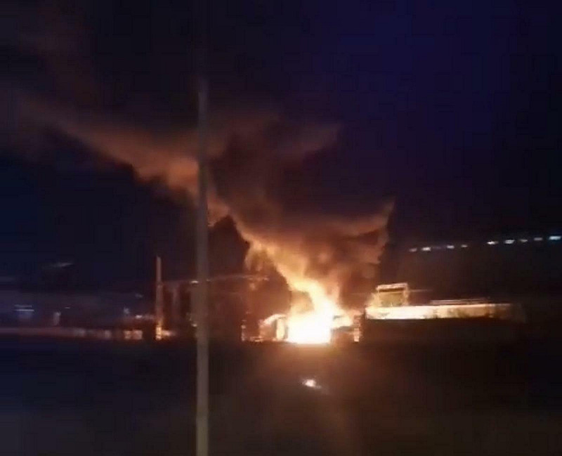 克斯托沃炼油厂遭乌军攻击后爆炸。图:翻摄自 X