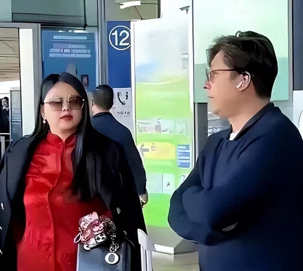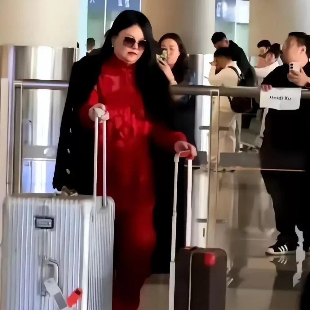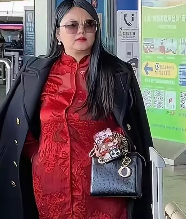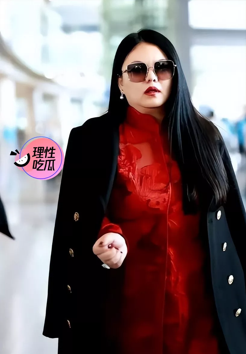 当天,李湘穿了一身红色新中式套装,外面还披了件黑色大衣,脸上戴着墨镜,走在人群里依旧能看出往日的气场。