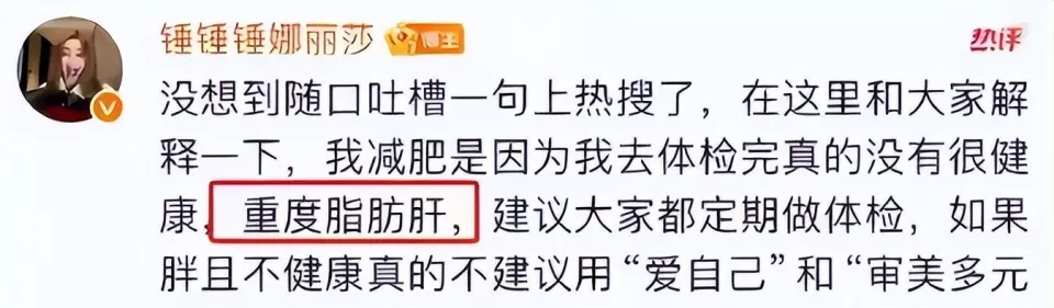 意识到健康问题后,她赶紧开始减肥,最后成功瘦了下来,脂肪肝的问题也跟着改善了。