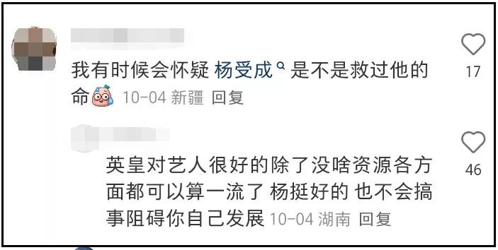 陈伟霆作为加入英皇超过二十年的老艺人,很难说在经济上与公司没有羁绊。且从他在各种公开场合的发言都能看出来,他对英皇的感情很深。在今年的一场品牌活动上,陈伟霆还公开表白杨受成,称其愿意扶持后辈,还大赞公司“英皇会养人。”