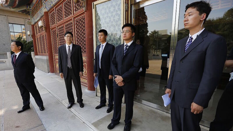 杜政引述北京知情人士的话说,习*近*平现在确实身体不好。一旦习突然倒下,蔡奇和李强免不了将发生激战。中南海保镖示意图。(JIM BOURG/AFP via Getty Images)