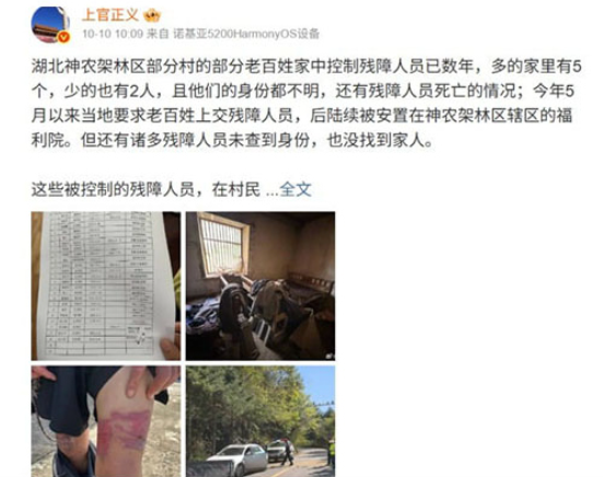 dayangelcp:如今对祖国发生任何事都不吃惊,但神农架林区村民控制残障人士劳作数年甚至十几年,我还是深深应激了。那些“奴隶”被限制人身自由。头发像枯草,脸上沾满泥垢,手腕上有明显的勒痕,吃着猪食,睡着狗窝,干着最粗最重的活儿。有的村民家能蓄5个这样的“傻奴”。疫情时,有关部门挨家入户打疫苗,他们知道,就是不管。这是默许蓄奴啊。