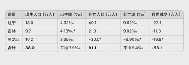 快乐的塔哥:东北常住人口9500万,去年只出生了38万,死亡91万,人口近3000万的黑龙江,出生仅为9.87万。老龄化的东北,产房不再排队,学校开始合并,广场舞的队伍越来越壮大。今年,东北三省出生人口预计不足29万。不要嘲笑东北,从北到南,再过几十年,所有的地区都将成为今天的东北。