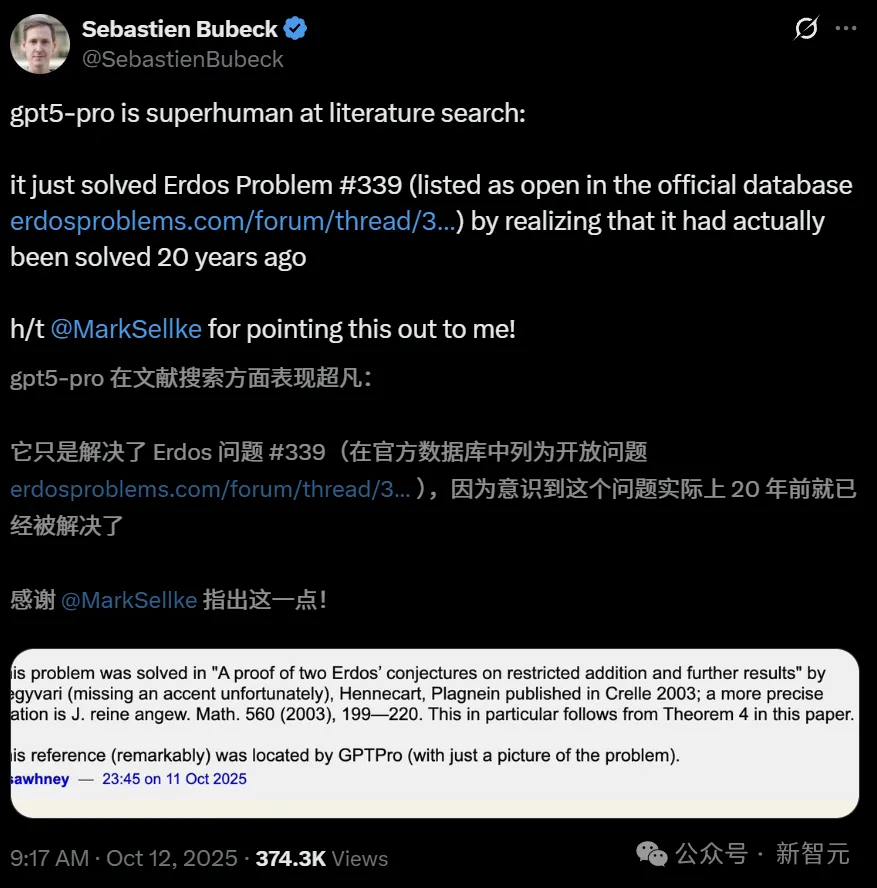 其中,Bubeck特地提到GPT-5 Pro在文献搜索方面的能力非常强大。
