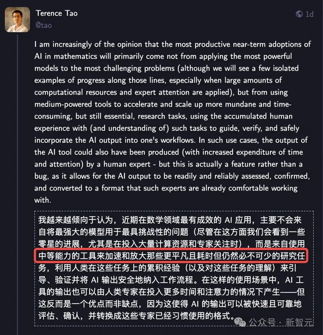 未来AI在数学上的最有成效应用,并不会来自最强大的模型去解最难的问题,而是来自“中等能力”的AI去处理那些琐碎、耗时、但又不可或缺的研究环节。