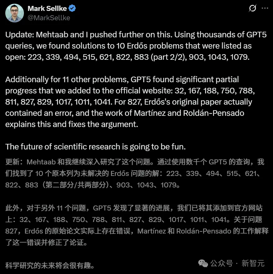 两位数学研究人员,利用GPT-5,只用一个周末就解决了10个“百年悬案”级的埃尔德什难题。