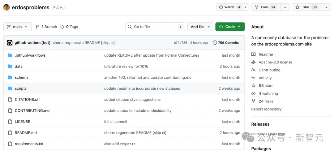 陶哲轩本人在Github上也维护了一个Erdős Problems埃尔德什问题数据库。