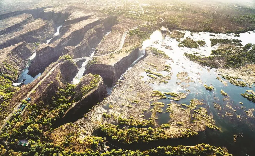旱季的维多利亚瀑布则展现出另一番秘境。当水量减缩,岩石裸露,魔鬼泳池便在悬崖边悄然显现。冒险者置身其中,脚下是百米深渊,池外是飞流直下的瀑布,身后是赞比西河的苍茫景色。这种惊险与壮美交织的体验,让无数冒险者心驰神往。而“瀑布桥”横跨峡谷,连接两国,其硬朗的线条与瀑布的柔美曲线相互映衬,刚柔并济,构成了极具视觉冲击力的画面。