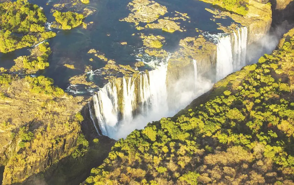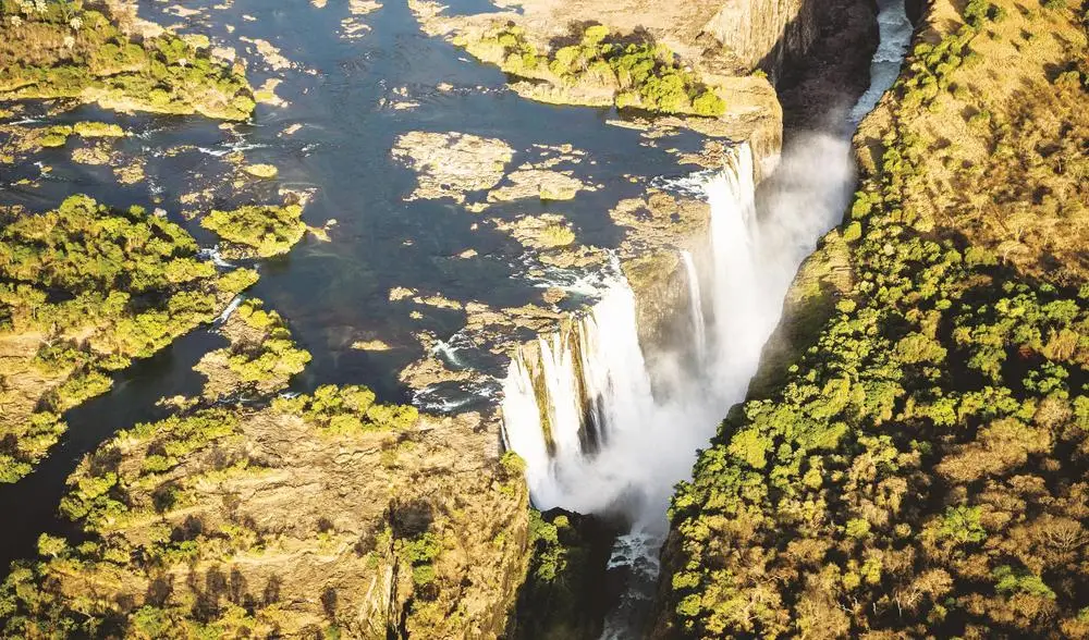 河水如银河决堤,裹挟着震天轰鸣,从百米高空倾泻而下。这便是最爆裂、最壮观的裂谷瀑布——维多利亚瀑布。