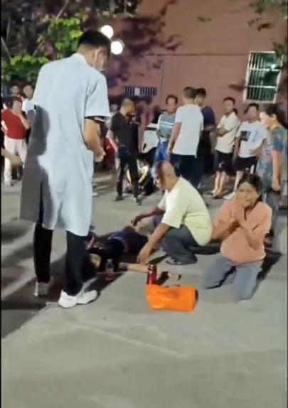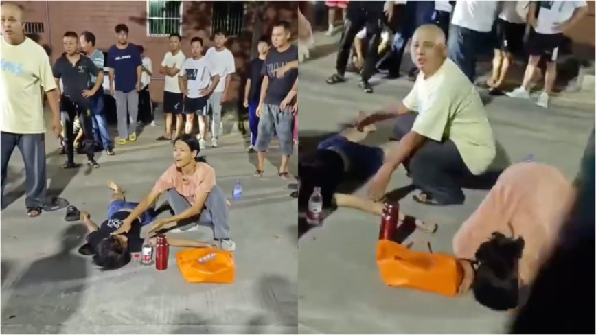 疑似女孩的母亲看到女儿一动不动躺在地上,没有任何反应,不知所措,给群众下跪求助。