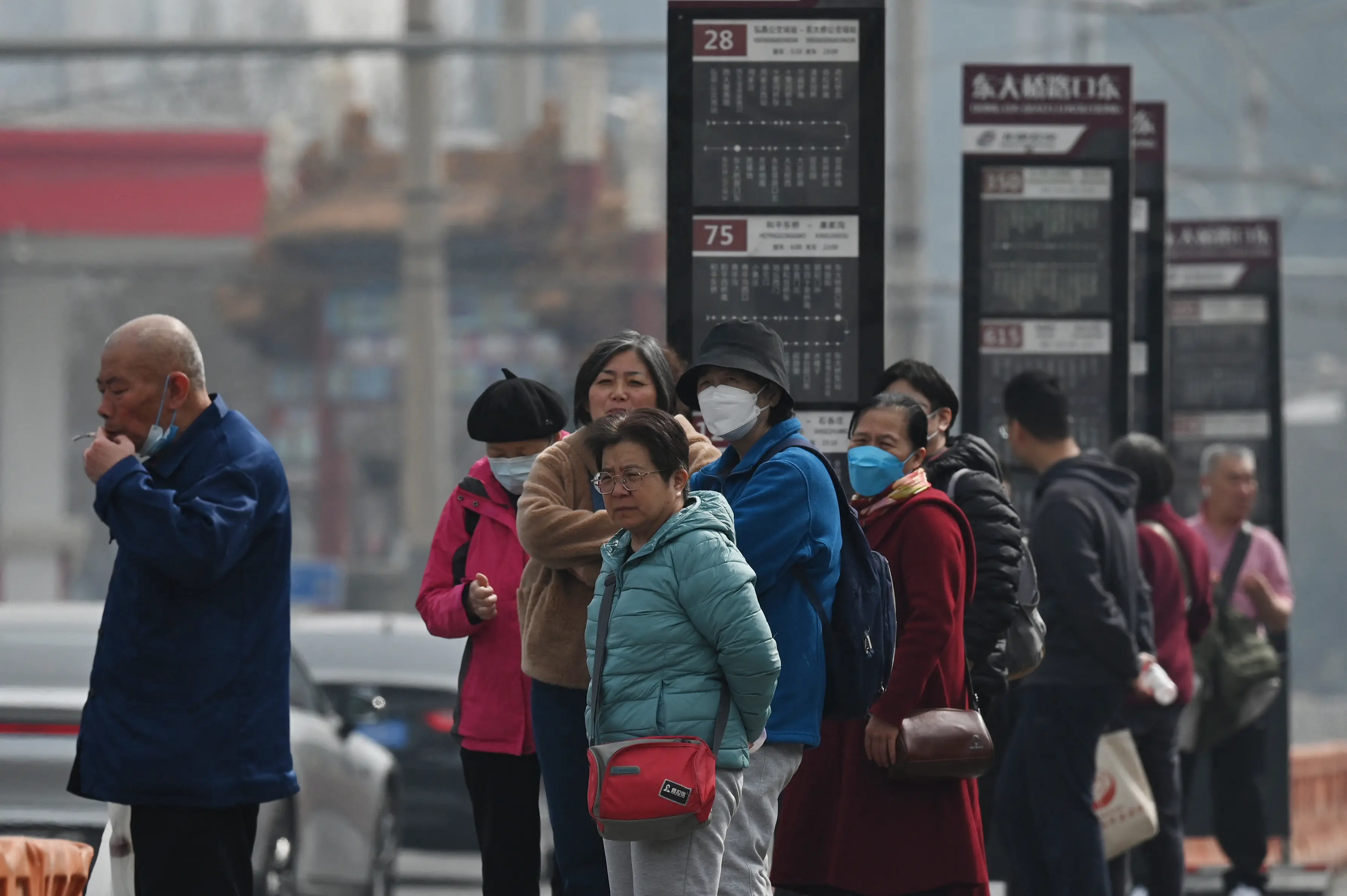 示意图,2024年3月16日,北京民众在等待公交车。(Greg Baker/AFP via Getty Images)