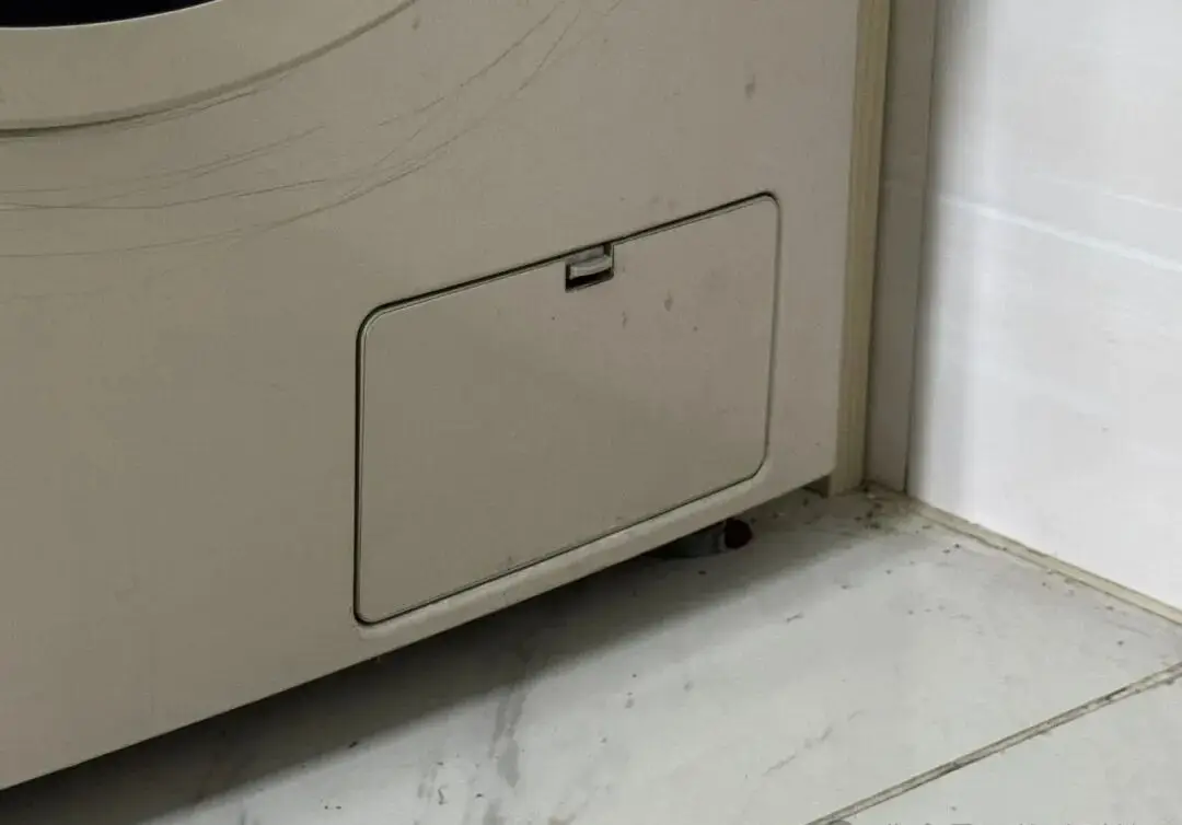 蹲下来,找到洗衣机右下角那个长方形的小门。