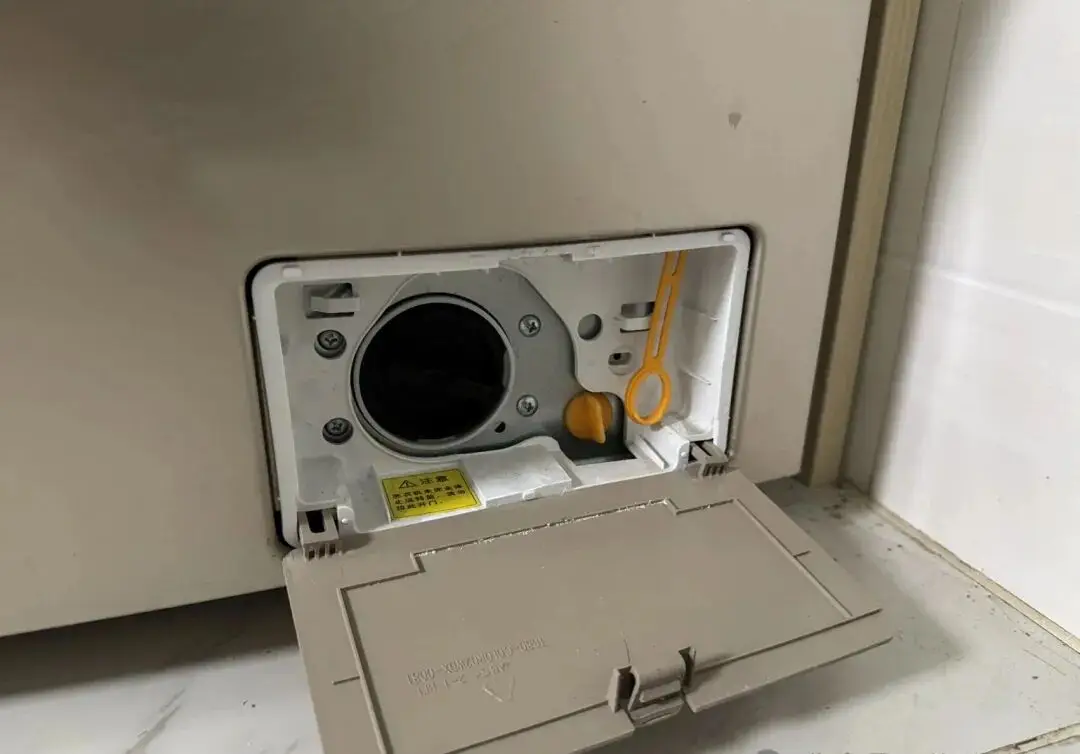 说了这么多,这个关键的小机关到底在哪里呢?绝大多数滚筒洗衣机的这个装置都位于右下角,是一个不太起眼的小门。