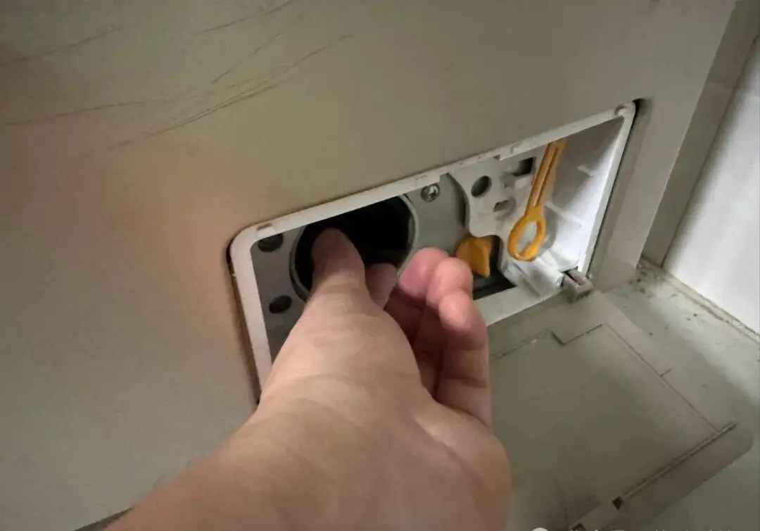 用手指扣住门上的凹槽,轻轻向外拉开。如果打不开,不要用蛮力,检查一下是否有锁扣装置。有些机型需要先按压再拉开。打开小门后,你会看到里面有一大一小两个装置。先找到那根细长的塑料管排水管,轻轻拉出来。