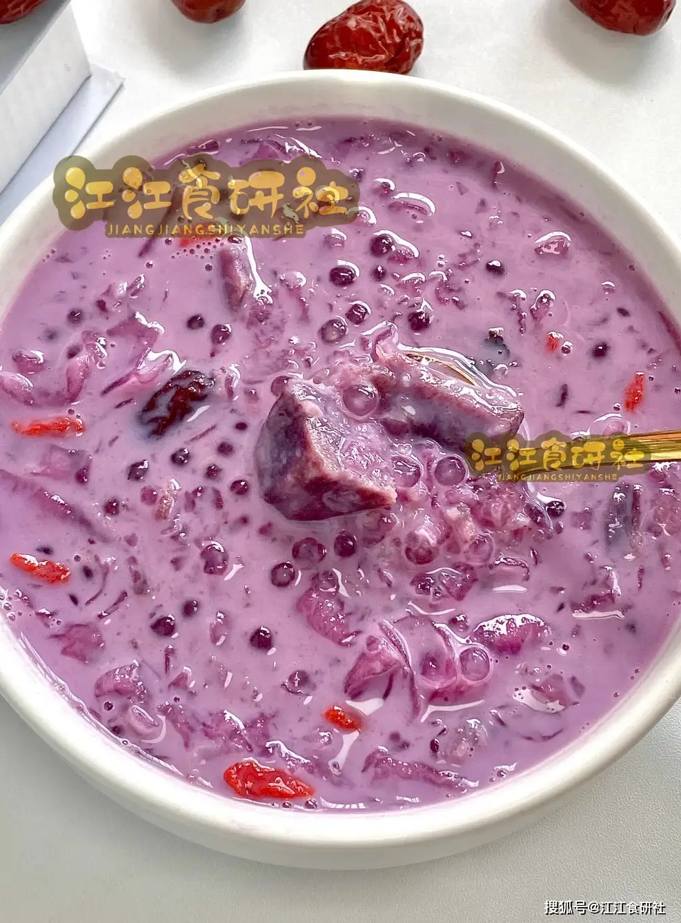 第二道:紫薯银耳百合西米露——颜值超高的“养颜糖水”